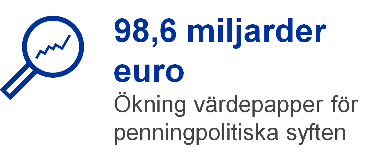 Värdepapper i euro som innehas för penningpolitiska syften utgjorde 61 procent av ECB:s totala tillgångar vid slutet 2020. I denna balanspost ingår värdepapper som ECB köpt inom programmet för värdepappersmarknaderna (SMP), de tre programmen för köp av säkerställda obligationer (CBPP1, CBPP2 och CBPP3), ABSPP, PSPP och PEPP.