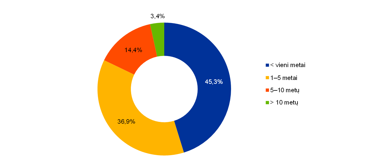 2021 m. gruodžio pabaigoje ECB pinigų politikos tikslais laikomų vertybinių popierių, įsigytų pagal aktyvias programas – TPP ir SPPP, portfelio terminų struktūra[9] buvo diversifikuota (3 pav.).