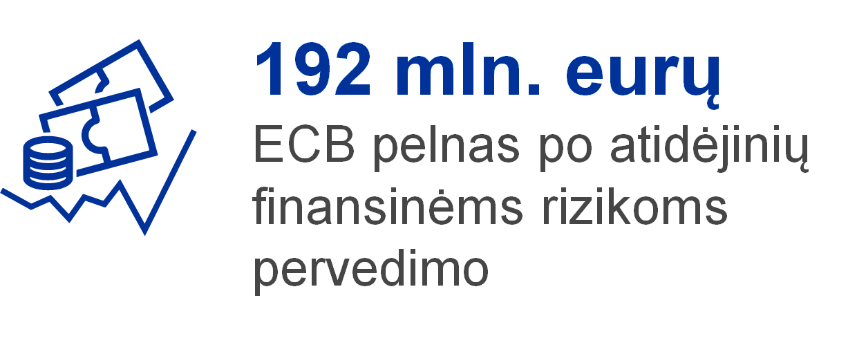 Po to, kai 2021 m. ECB apmokėtasis kapitalas padidėjo 0,6 mlrd. eurų, viršutinė atidėjinių finansinėms rizikoms riba buvo padidinta tokia pačia suma. Valdančioji taryba, atsižvelgdama į ECB finansinių rizikų pozicijų vertinimo rezultatus, nusprendė pervesti 0,6 mlrd. eurų ECB finansinių rizikų atidėjiniams ir papildyti juos iki didžiausios leistinos vertės, t. y. 8,2 mlrd. eurų.