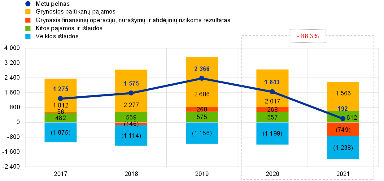 - Dėl atidėjinių finansinėms rizikoms atitinkamai sumažėjo 2021 m. pelnas.