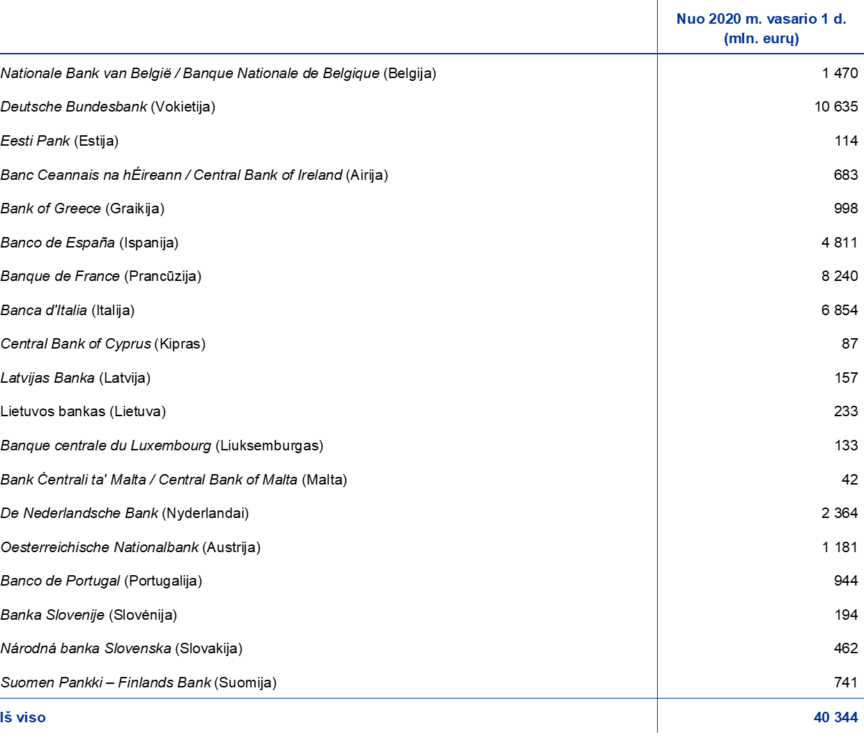 - Žr. 2020 m. sausio 30 d. pranešimą spaudai dėl ECB pasirašytojo kapitalo Bank of England pasitraukus iš ECBS.