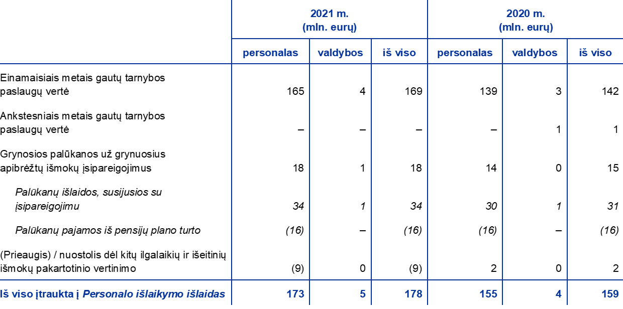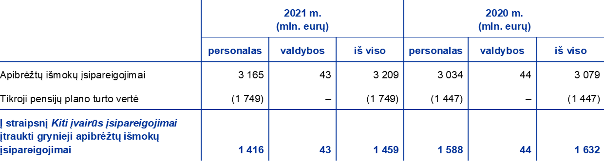 - Dėl pelno (nuostolio) ataskaitoje parodytos grynosios sumos, susijusios su dabartinių Vykdomosios valdybos ir Priežiūros valdybos narių pensijų susitarimais, žr. 13.3 pastabą Kiti įvairūs įsipareigojimai.