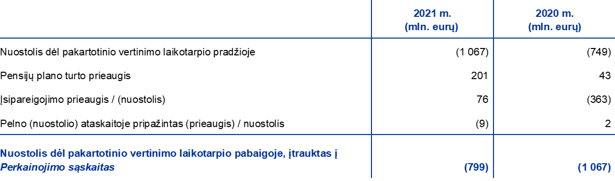 - Į balanso straipsnį Perkainojimo sąskaitos įtrauktas išmokų tarnautojams pasibaigus jų darbo santykiams perskaičiavimo rezultatas.