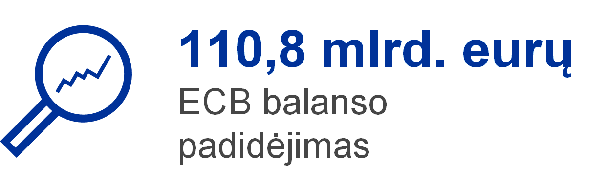 ECB balanso padidėjimui įtakos turėjo išaugusi apyvartoje cirkuliuojančių eurų banknotų vertė ir ECB užsienio atsargų rinkos vertė.