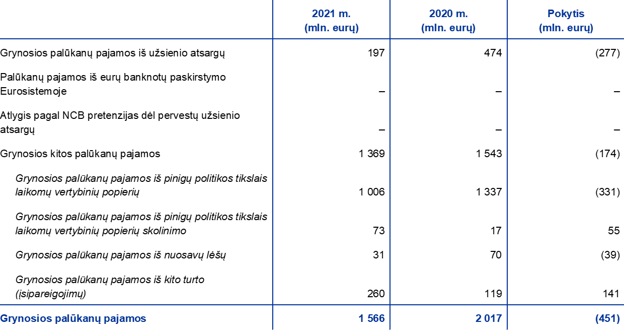 Grynosios palūkanų pajamos iš pinigų politikos tikslais laikomų vertybinių popierių