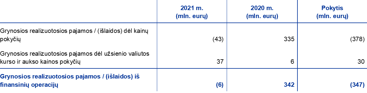 Pastaba: į perkainojimo sąskaitas įtraukiamas bendras aukso, užsienio valiutų ir vertybinių popierių perkainojimo prieaugis, bet neįtraukiama išmokų tarnautojams, pasibaigus jų darbo santykiams, perkainojimo sąskaita.