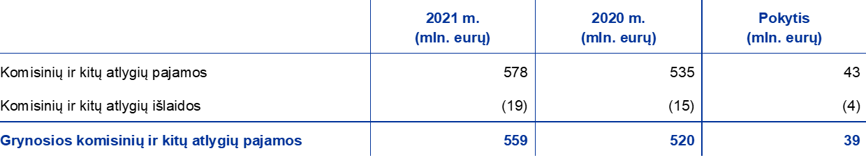 Pastaba: straipsnį Kitos pajamos ir išlaidos sudaro Grynosios komisinių ir kitų atlygių pajamos (išlaidos), Pajamos iš nuosavybės vertybinių popierių ir dalyvavimo nuosavybės priemonėse, Kitos pajamos ir Kitos išlaidos.