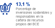 La proporción de inversiones verdes en la cartera de recursos propios continuó aumentando, desde el 7,6 % a final de 2021 hasta el 13,1 % a final de 2022. El BCE tiene previsto incrementar esta proporción en los próximos años[11]. Desde 2021, las compras de bonos verdes en los mercados secundarios se complementan con inversiones en el fondo de inversión en bonos verdes denominados en euros para bancos centrales lanzado por el Banco de Pagos Internacionales en enero de 2021.