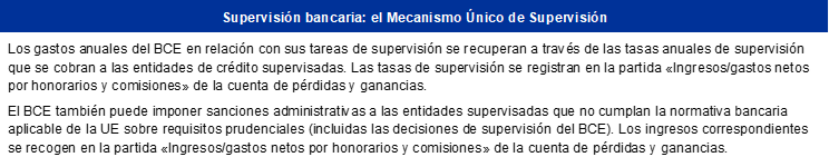 Los gastos realizados por el BCE en el ejercicio de sus tareas de supervisión se recuperan a través de las tasas anuales cobradas a las entidades supervisadas. Puede consultarse información más detallada en el sitio web de supervisión bancaria del BCE.
