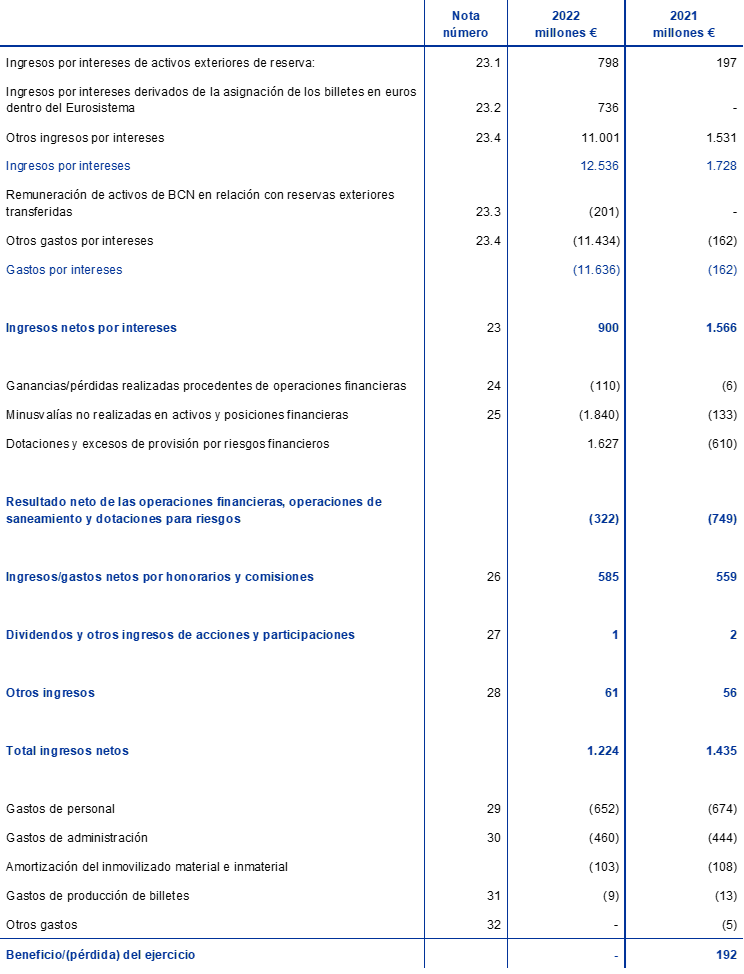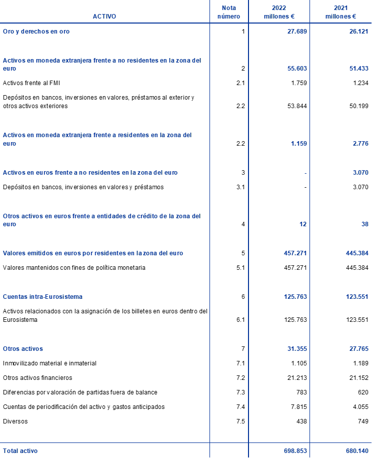 Esta nota no forma parte de los estados financieros del BCE de 2022.