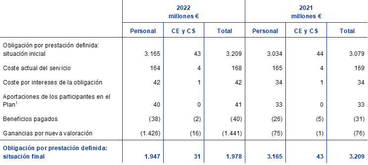 Las aportaciones obligatorias del BCE y de los miembros del personal reflejan solo el pilar de prestación definida del plan. Las aportaciones voluntarias realizadas por los miembros del personal en un sistema de aportación definida en 2022 ascendieron a 189 millones de euros (220 millones en 2021). Estas aportaciones se invierten en los activos del Plan y generan una obligación correspondiente de igual valor.