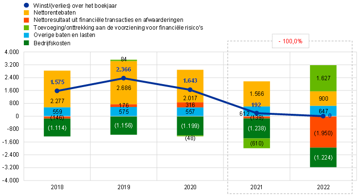 Belangrijkste posten van de winst-en-verliesrekening van de ECB