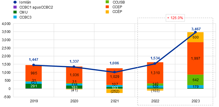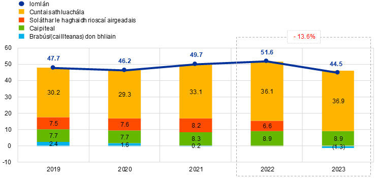 Ní cuid de ráitis airgeadais BCE don bhliain 2023 an nóta seo.
