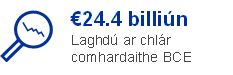 Nóta: Chun críoch na cairte seo, is é atá i “Dliteanais do chónaitheoirí agus neamhchónaitheoirí an limistéir euro a ainmnítear in euro” ná “Dliteanais eile d’institiúidí creidmheasa sa limistéar euro a ainmnítear in euro”, “Dliteanais do chónaitheoirí eile an limistéir euro a ainmnítear in euro” agus “Dliteanais do neamhchónaitheoirí de chuid an limistéir euro a ainmnítear in euro”.