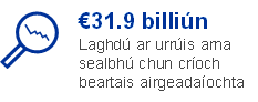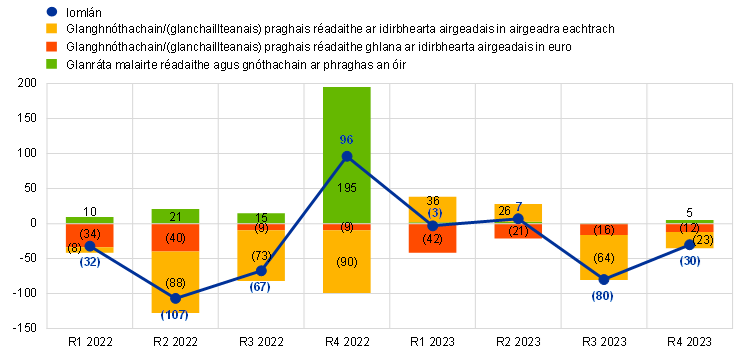 Nóta: Áirítear le “cuntais athluachála” gnóthachain athluachála iomlána ar ór, sealúchais airgeadra agus urrús eachtracha, ach ní áirítear an cuntas athluachála le haghaidh sochair iarfhostaíochta.