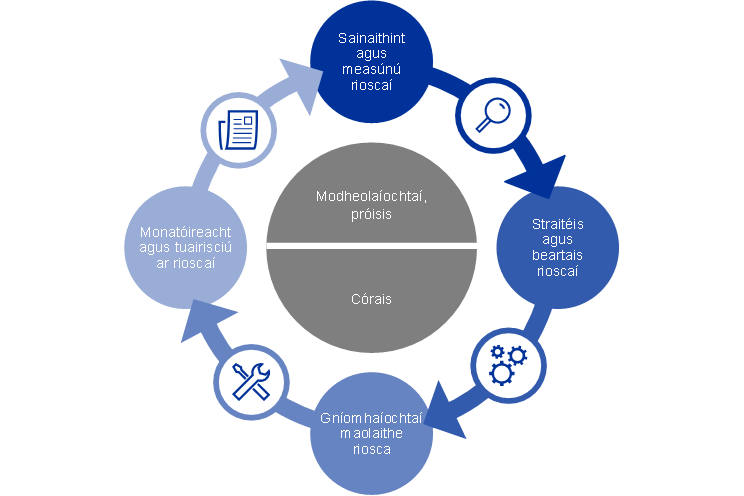 - Aithnímid agus measaimid na rioscaí a bhaineann le míráiteas ábhartha sna Ráitis Airgeadais, bíodh sin de dheasca calaoise nó earráide, dearaimid agus cuirimid nósanna imeachta iniúchta i gcrích a mbíonn aird acu ar na rioscaí sin, agus faighimid fianaise iniúchta atá dóthanach agus cuí chun bunús a thabhairt lenár dtuairim. Is mó an riosca nach mbraithfí míráiteas ábhartha a eascraíonn as calaois ná an riosca nach mbraithfí míráiteas ábhartha a eascraíonn as earráid, toisc go bhféadfadh claonpháirteachas, brionnú, easnaimh d'aon turas, mífhaisnéisí nó sárú ar rialú inmheánach a bheith i gceist le calaois.