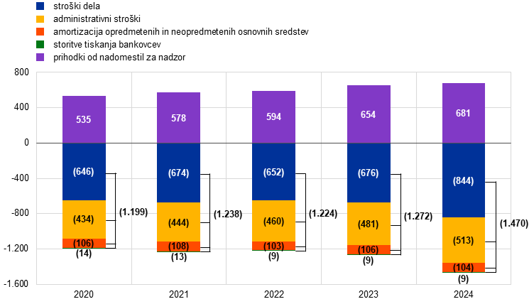 Bančni nadzor – enotni mehanizem nadzora | Letni izdatki, ki jih ima ECB v zvezi z nadzorniškimi nalogami, se povrnejo prek letnih nadomestil za nadzor, ki se zaračunajo nadzorovanim subjektom. Nadomestila za nadzor so vključena v izkaz poslovnega izida pod postavko »Neto prihodki/(odhodki) iz provizij«. |