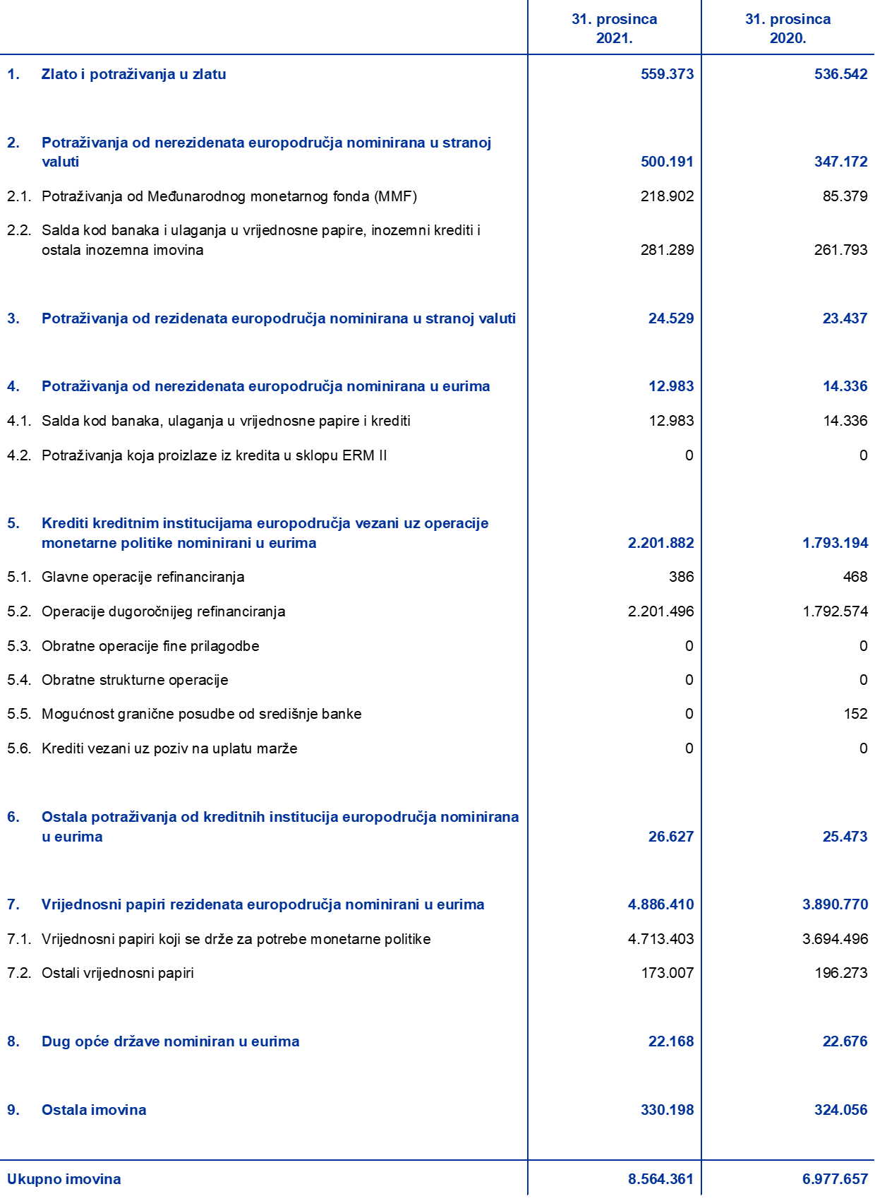 Konsolidirana bilanca Eurosustava na dan 31. prosinca 2021.