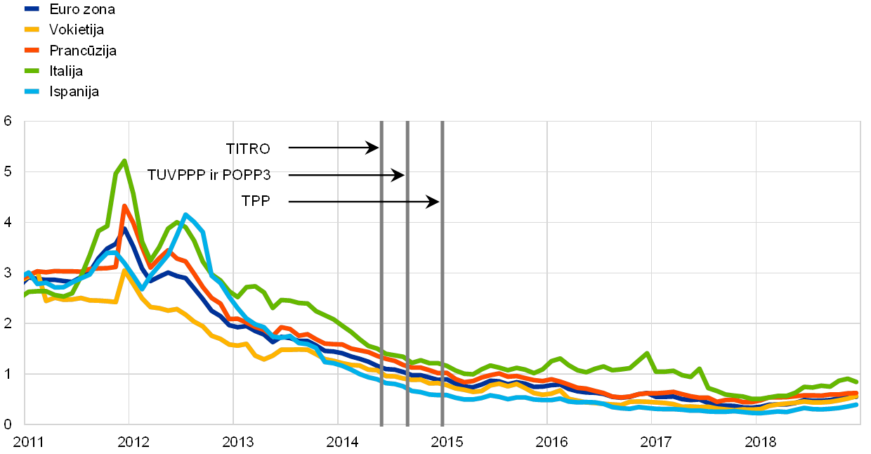 - Daugiau apie TPP poveikį euro zonai žr. straipsnį „Taking stock of the Eurosystem’s asset purchase programme after the end of net asset purchases“, Economic Bulletin, ECB, 2019 (bus paskelbta netrukus).
