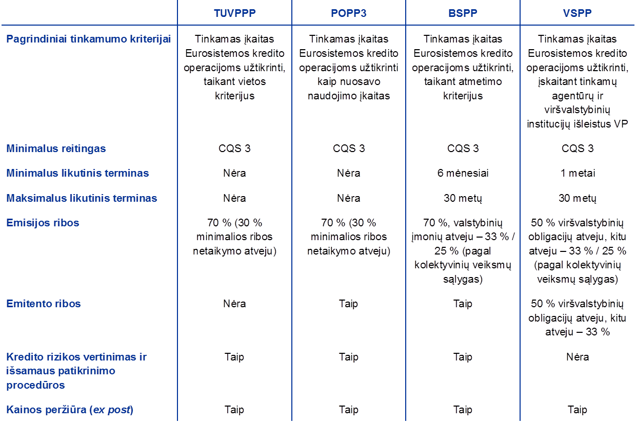 - 2017 m. sausio 19 d. Valdančioji taryba nusprendė, kad turtą, kurio pajamingumas iki išpirkimo termino yra mažesnis negu indėlių galimybės palūkanų norma, leidžiama pirkti tik pagal VSPP, ir patvirtino, kad pagal POPP3, TUVPPP ir BSPP tokie pirkimai nenumatyti. Daugiau informacijos žr. ECB interneto svetainėje.