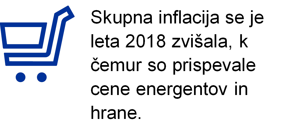 Skupna inflacija se je v primerjavi s prejšnjim letom zvišala in je leta 2018 v povprečju znašala 1,7%, vendar so k temu prispevale predvsem višje cene energentov. Merila osnovne inflacije so se med letom večinoma gibala okrog dosežene ravni. Vseeno so nam obeti glede domačega povpraševanja, trga dela in rasti plač vlivali zaupanje, da se bo inflacija v srednjeročnem obdobju še naprej približevala našemu cilju.