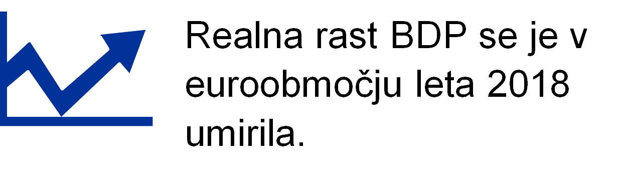 Gospodarska rast v euroobmočju se je leta 2018 nadaljevala, vendar je gospodarstvo izgubljalo zagon. Rast se je upočasnila z 2,5% v letu 2017 na 1,8% v letu 2018, saj se je tekom leta pojavila vrsta zaviralnih dejavnikov. Precejšnja upočasnitev svetovne trgovinske menjave je skupaj s številnimi specifičnimi dejavniki v posameznih sektorjih in državah negativno vplivala na izvozni sektor in zlasti na predelovalne dejavnosti.