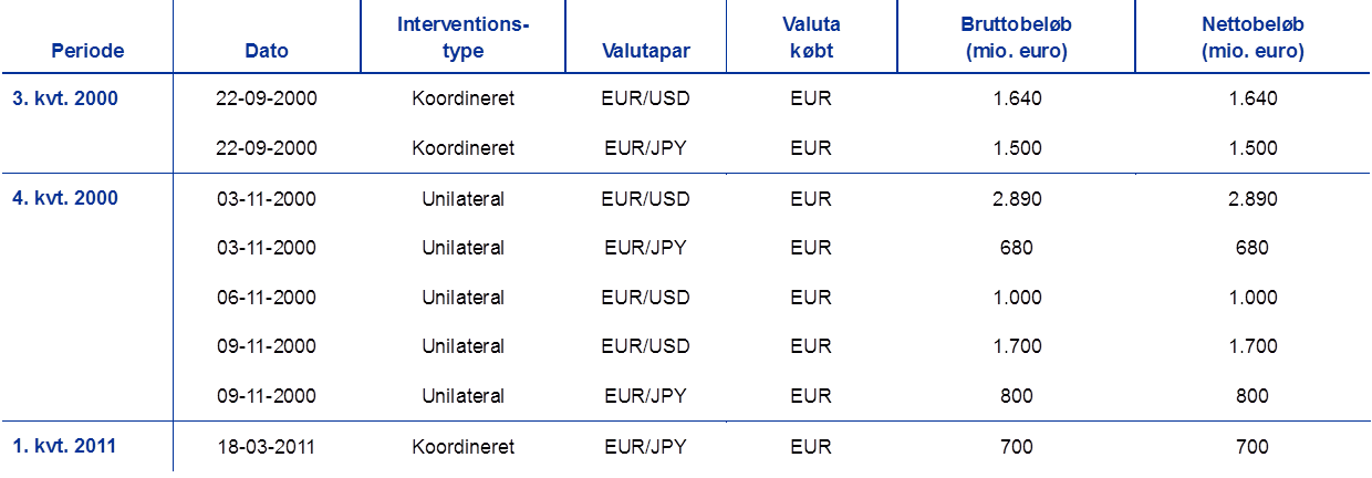 - Den 12. september 2019 besluttede Styrelsesrådet at udvide muligheden for at købe aktiver med en rente, som ligger under renten på indlånsfaciliteten under alle dele af APP, i det omfang det er nødvendigt. For nærmere oplysninger henvises til "ECB provides additional details on purchases of assets with yields below the deposit facility rate", pressemeddelelse, ECB, 12. september 2019.