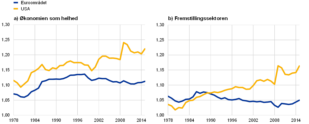 - Forholdet mellem beskæftigelse og produktivitet i den aktuelle periode med beskæftigelsesvækst er nærmere beskrevet i boksen "Employment growth and GDP in the euro area", Economic Bulletin, 2. udgave, ECB, 2019, og boksen "How does the current employment expansion in the euro area compare with historical patterns?", Economic Bulletin, 6. udgave, ECB, 2019.