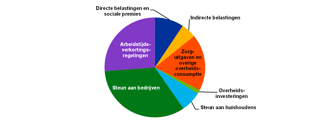 Het merendeel van de extra uitgaven betrof de directe kosten in verband met de gezondheidscrisis of de ondersteuning van huishoudens en bedrijven