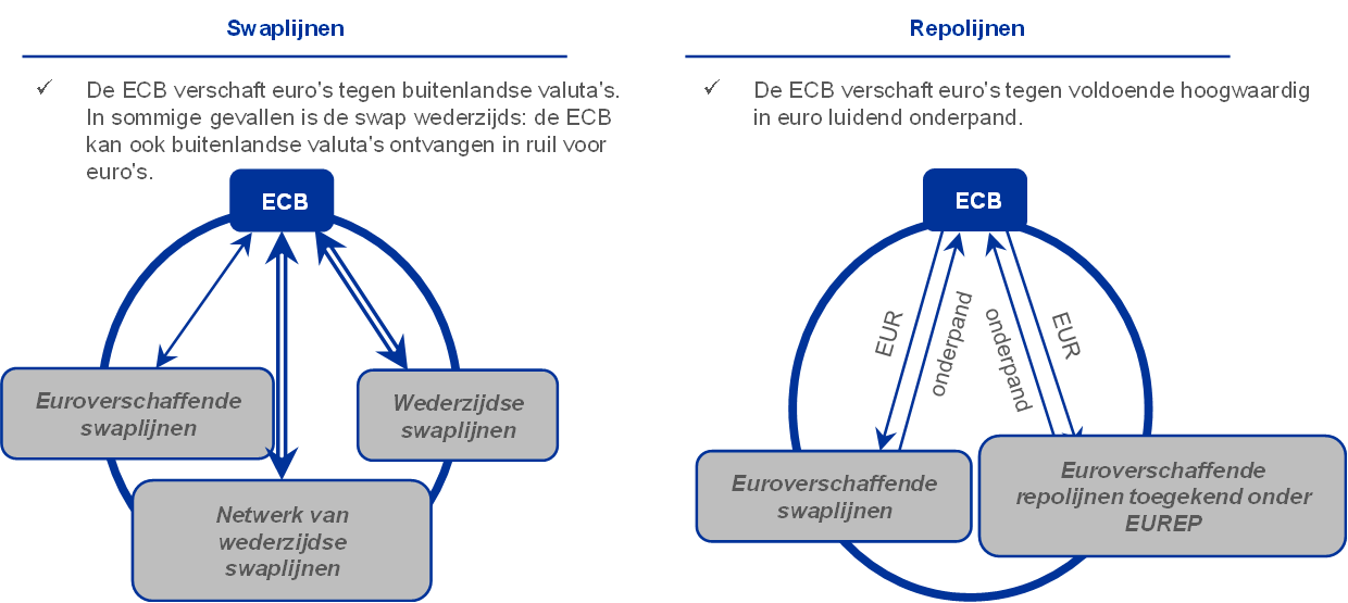 - Zie ook Panetta, F. en Schnabel, I., “The provision of euro liquidity through the ECB’s swap and repo operations”, The ECB Blog, ECB, 19 augustus 2020.