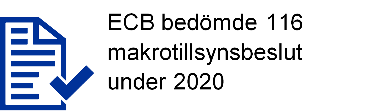 ECB genomförde betydande lättnader i den penningpolitiska inriktningen för att motverka pandemins negativa inverkan på euroområdets ekonomi. Detta gjordes genom omfattande åtgärder som omkalibrerades under året. Åtgärderna bestod bland annat i att inrätta ett nytt tillfälligt stödprogram föranlett av pandemin, införa lättnader i kriterierna för säkerheter och godtagbarhet samt att erbjuda nya långfristiga refinansieringstransaktioner. Den penningpolitiska responsen var en avgörande stabiliserande kraft för marknaderna och bidrog till att motverka de allvarliga risker som pandemin innebar för den penningpolitiska transmissionsmekanismen, utsikterna för euroområdets ekonomi och i förlängningen för ECB:s prisstabilitetsmål. Makrotillsynsåtgärderna inriktades framför allt på att upprätthålla kreditflödet till ekonomin, medan mikrotillsynsåtgärderna från ECB:s banktillsyn inriktades på att mildra krisens effekter och främja den europeiska banksektorns motståndskraft.
