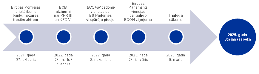 Sk. Eiropas Centrālās bankas 2022. gada 27. aprīļa Atzinumu par priekšlikumu Eiropas Parlamenta un Padomes direktīvai, ar ko groza Direktīvu 2013/36/ES attiecībā uz uzraudzības pilnvarām, sankcijām, trešo valstu filiālēm un vides, sociālajiem un pārvaldības riskiem (CON/2022/16) (OV C 248, 30.06.2022., 87. lpp.) un Eiropas Centrālās bankas 2022. gada 24. marta Atzinumu par priekšlikumu grozīt Eiropas Parlamenta un Padomes Regula (ES) Nr. 575/2013 attiecībā uz prasībām kredītriskam, kredīta vērtības korekcijas riskam, operacionālajam riskam, tirgus riskam un pašu kapitāla minimālajai robežvērtībai (CON/2022/11) (OV C 233, 16.06.2022., 14. lpp.). ECB arī publicēja atzinumu par paketes trešo elementu, sk. Eiropas Centrālās bankas 2022. gada 13. janvāra Atzinumu par priekšlikumu grozīt Regulu (ES) Nr. 575/2013 attiecībā uz kredītiestāžu un ieguldījumu brokeru sabiedrību noregulējuma prudenciālajām prasībām (CON/2022/3) (OV C 122, 17.03.2022., 33. lpp.).