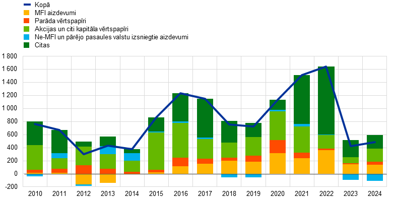 81. Sk. ECB 2023. gada "Tautsaimniecības Biļetena" Nr. 4 ielikumu "Euro zonas ārējo finanšu plūsmu lielais sarukums 2022. gadā: uz detalizētāku maksājumu bilances statistiku balstītas atziņas".