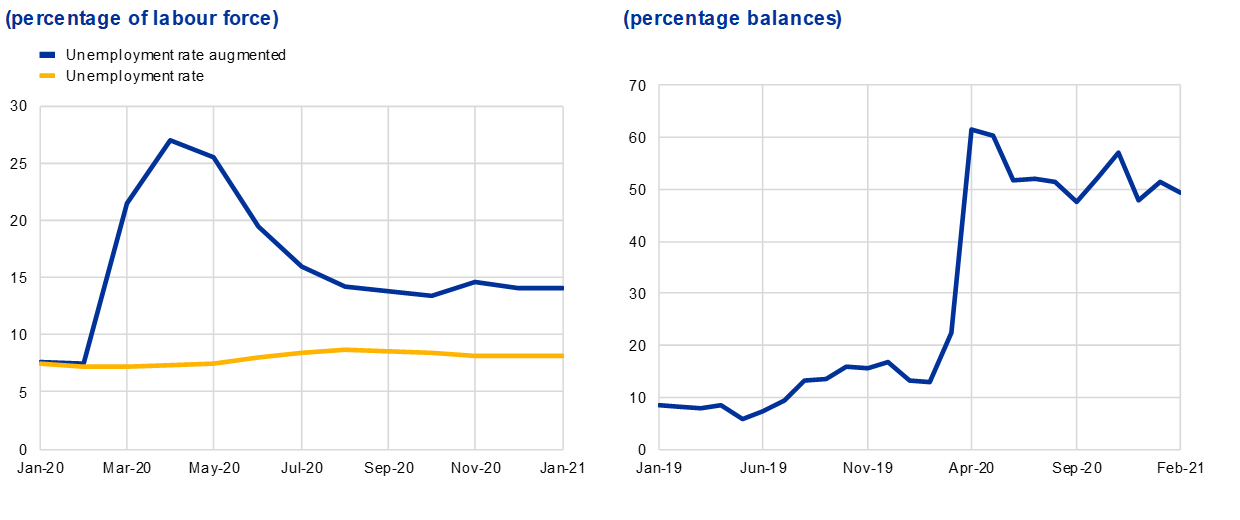 In our assessment the overall situation in the labour market still shows elevated uncertainty about job prospects. Although the increase in unemployment has been limited by extensive fiscal support for firms and workers, the headline unemployment figure masks considerable migration from employment straight into inactivity on the one hand and the life support provided by the extensive job retention measures on the other.