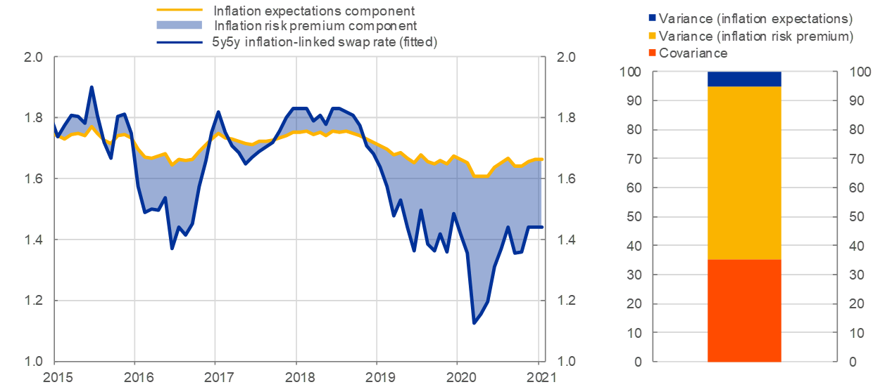 Market-based indicators of inflation compensation have increased from historic lows in recent weeks. In large part, this can be attributed to a less pessimistic global outlook, mainly related to the news about substantial US fiscal stimulus and the strong global recovery in manufacturing, trade and oil prices. In particular, the tail risk of extremely-low (or even negative) inflation outcomes has diminished, so that investors require greater compensation to hold longer-term nominal bonds, given the shift in the distribution of inflation outcomes. Of course, the recovery relative to the pandemic trough should not obscure the overall profile by which measures of inflation compensation are clearly subdued by historical standards and still at a significant distance to the ECB’s inflation aim.