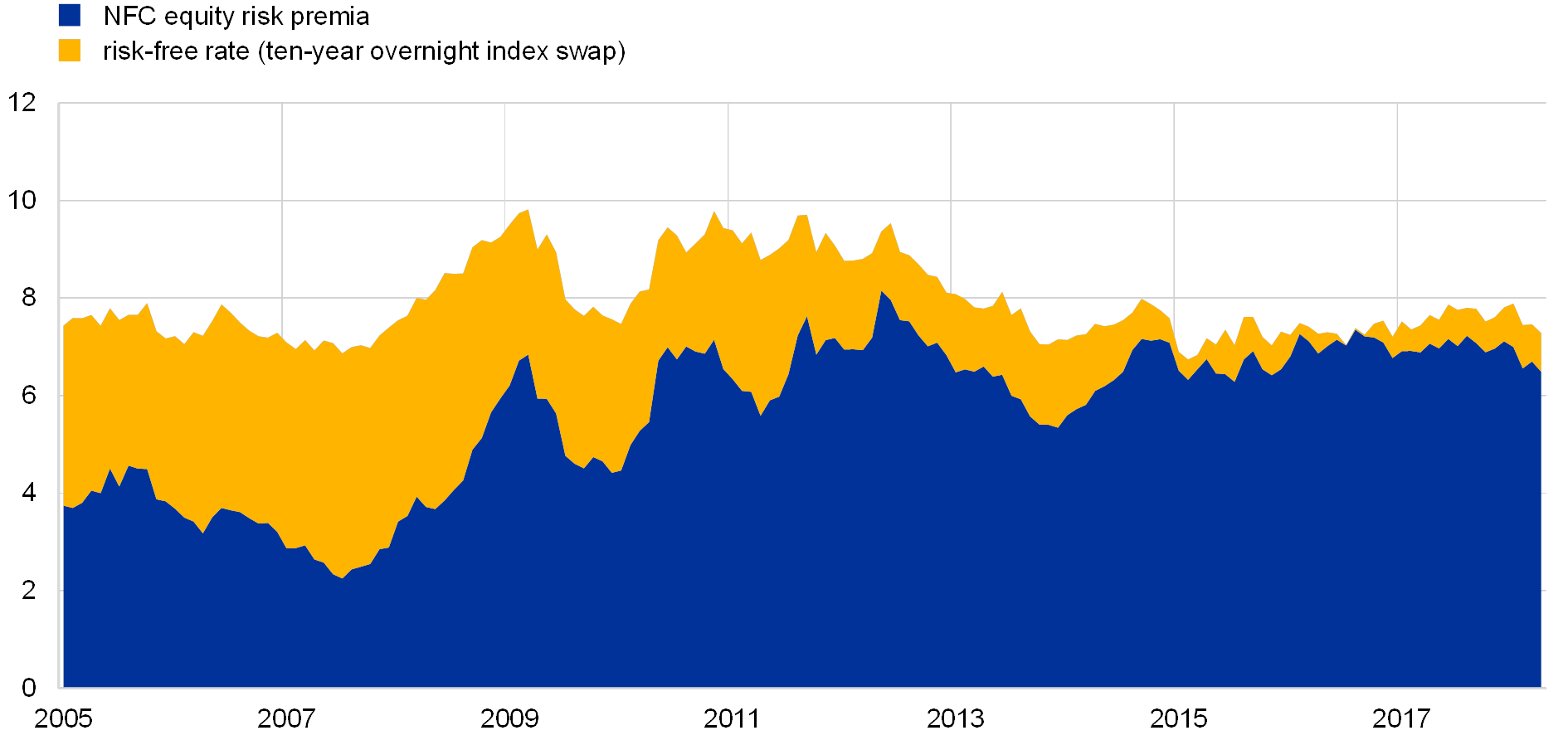 Equity provides a substantial source of funding for euro area NFCs, rendering the cost of equity relevant from a monetary policy perspective. The cost of equity for euro area corporations, in comparison with the cost of debt, has stayed relatively high since the onset of the global financial crisis, underpinned by an elevated ERP.