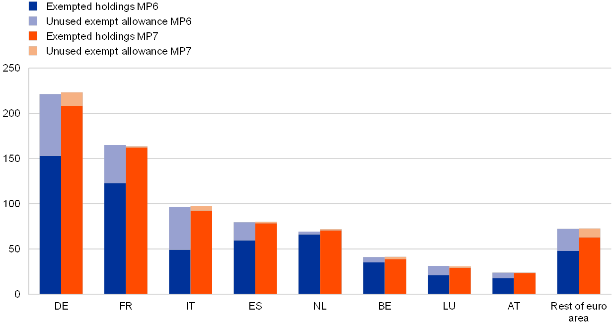 Notes: Exempted holdings and unused exemption allowances are computed on the basis of individual average excess liquidity holdings (excess reserves plus recourse to the deposit facility) for the sixth maintenance period (MP 6) and on the basis of average excess reserves holdings (until 24 November) for the seventh maintenance period (MP 7).