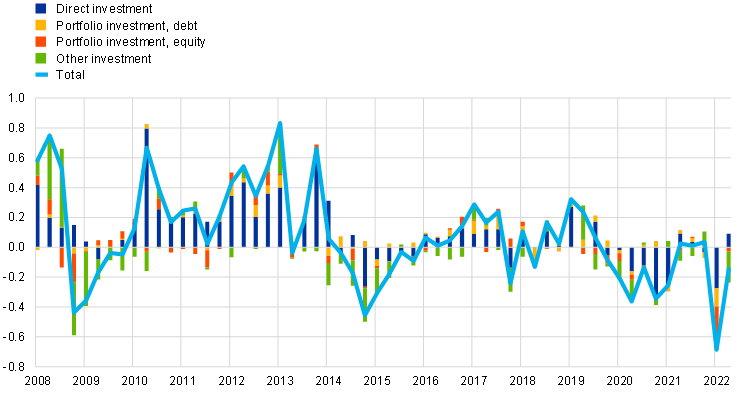 Note: A positive (negative) number indicates net purchases (sales) of Russian instruments by euro area investor.