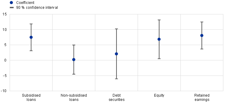From the side of firms, reduced-form regressions investigating the joint impact of the sources of finance on climate related investments confirm that the use of subsidised loans and retained earnings increases investment probability by 7 pp and 8 pp, respectively (Chart F, panel b). In addition, results highlight the importance of equity capital to foster firm investment in mitigating natural hazard risk and their own negative environmental impact.[11]