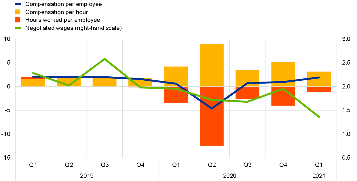 10. For detailed analysis of the indicator of negotiated wages, including details of recent developments and the role that the indicator plays in assessing and forecasting wage developments at the current juncture, see the box entitled “Assessing wage dynamics during the COVID-19 pandemic: can data on negotiated wages help?”, Economic Bulletin, Issue 8, ECB, 2020.