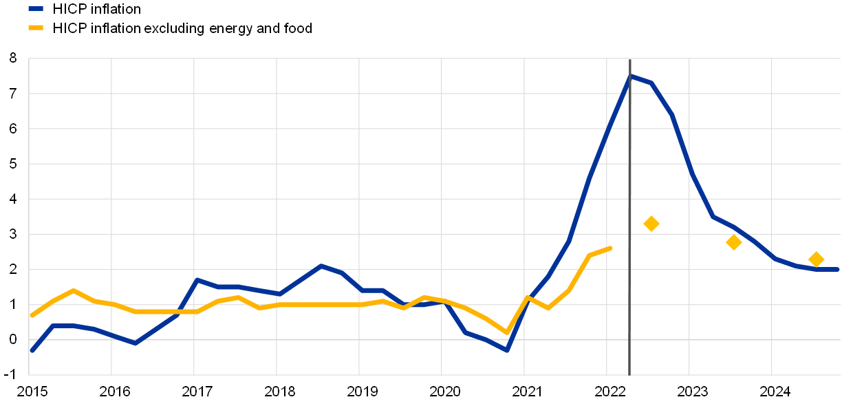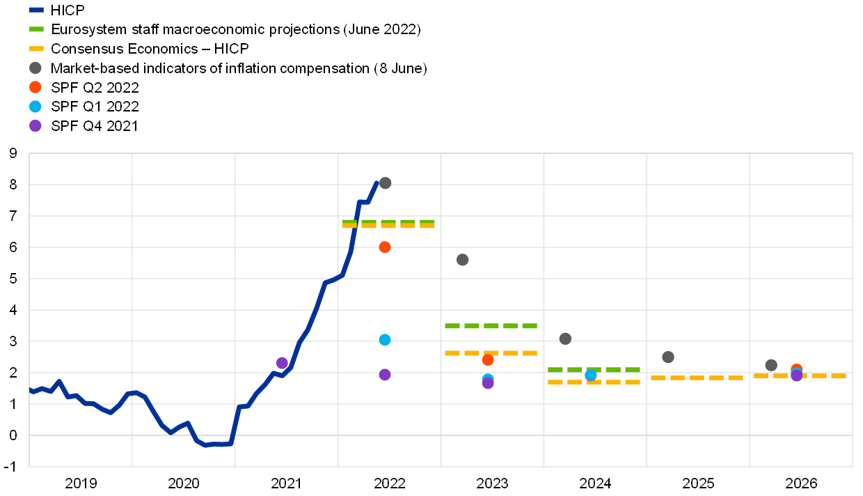 Sources: ECB and June 2022 Eurosystem staff macroeconomic projections.