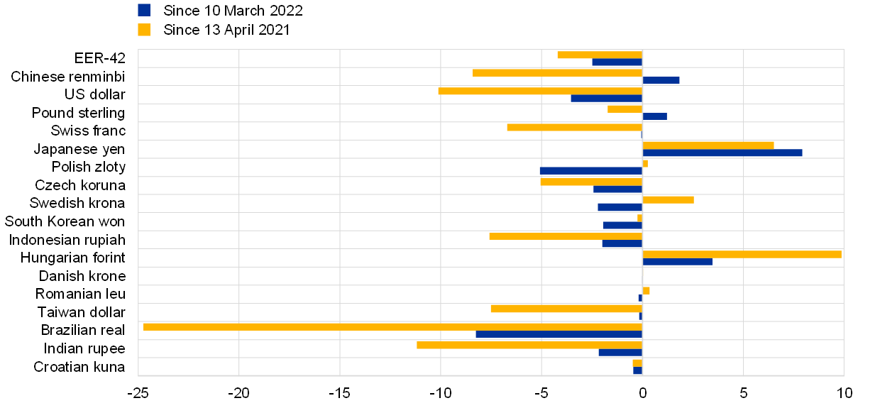 The economic fallout from the war and the new lockdowns in China represent headwinds to global growth in the near term. Through commodity prices, supply chains and uncertainty, the consequences of the war in Ukraine are reaching well beyond the countries and regions closely associated with Russia and Ukraine via trade and financial linkages. While the war is weighing on growth, it is also adding to already heightened inflationary pressures, particularly in emerging market economies (EMEs), where spending on energy and food constitutes a particularly large share of private consumption. In addition, the resurgence of the coronavirus (COVID-19) pandemic in Asia and the associated tightening of containment measures, particularly in economically important Chinese provinces, are adding pressure to global supply chains following a brief period of easing earlier this year. The implications of the Russian invasion and the pandemic measures in China are operating in an environment of high inflationary pressures, which has prompted central banks across the globe to adjust their monetary policies, thereby contributing to tighter financial conditions.