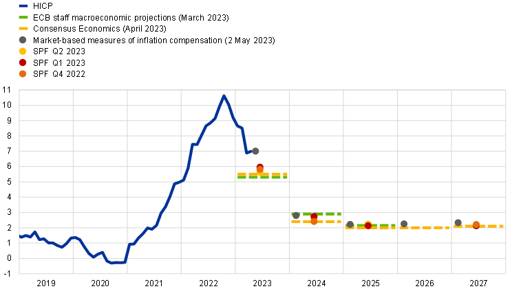 2. See “Results of the ECB Survey of Professional Forecasters for the second quarter of 2023”, press release, ECB, 5 May 2023.