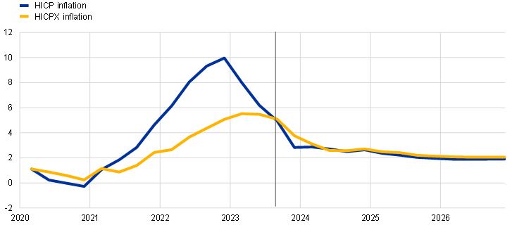 Sources: ECB calculations and Eurosystem staff macroeconomic projections for the euro area, December 2023.