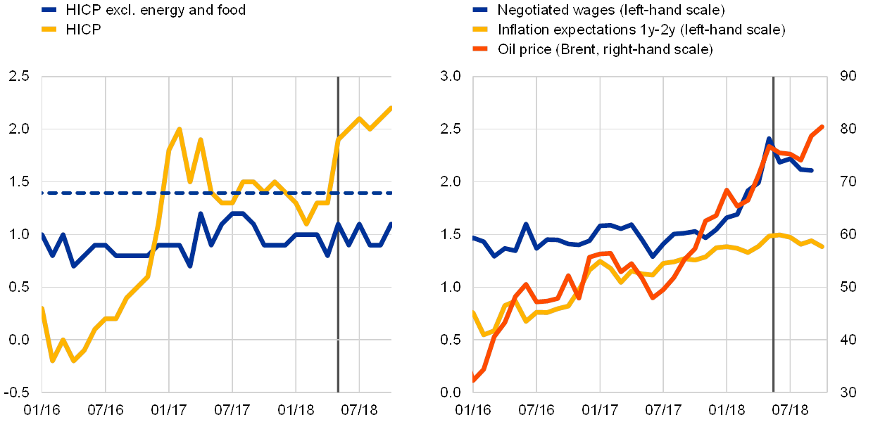 The expansion of the euro area economy has continued since May. Economic growth in the euro area has slowed down somewhat in 2018, but the recovery still remains broad-based. Going forward, the euro area economy is expected to grow at continued solid rates in the coming years, supported by improving labour market conditions and stronger sectoral balance sheets. Downside risks to the euro area growth outlook have gained more prominence recently, mainly relating to global factors. Uncertainties regarding the course of US fiscal and monetary policies, a further rise in geopolitical risks across the globe, including those relating to growing trade protectionism, as well as a further intensification of stress in EMEs, may weigh on the global and euro area growth momentum.