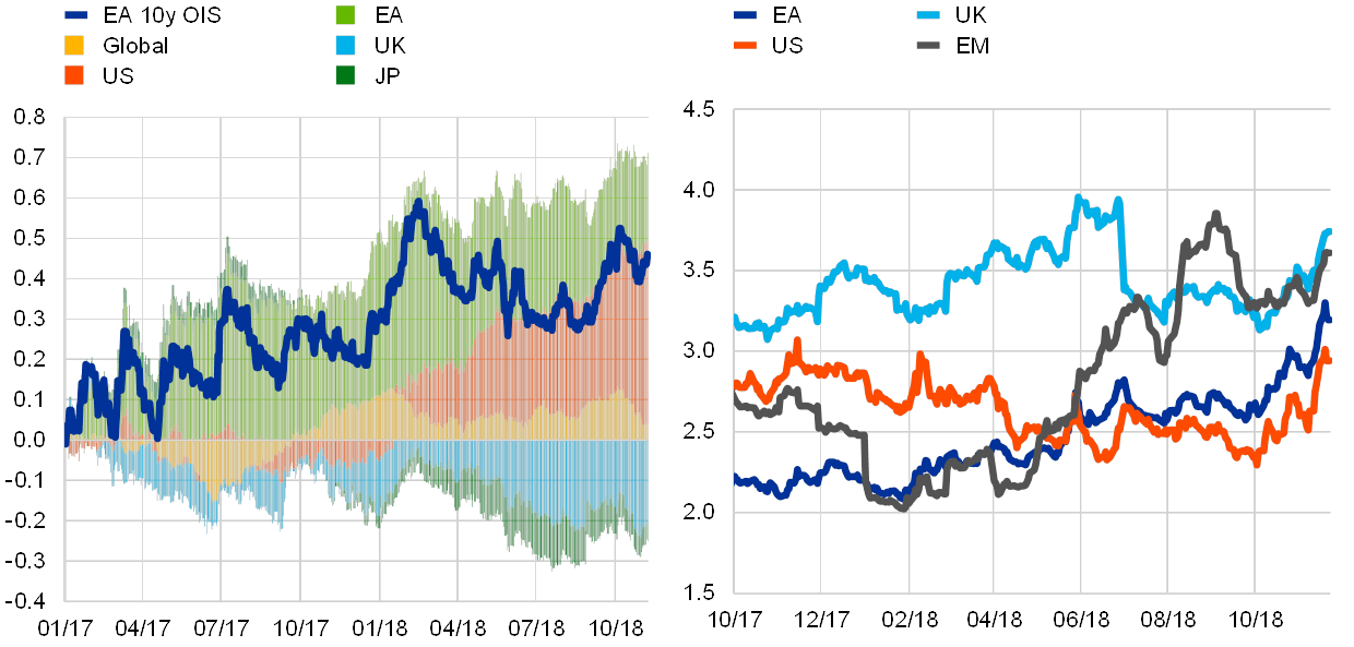 Tail risks to GDP growth have been creeping up from low levels, amid intermittent bouts of financial stress. The composite indicator of systemic stress in financial markets has exhibited flare-ups, as sovereign tensions in Italy have risen and some emerging market economies (EMEs) have experienced stress. At the same time, the risk of a sharp fall in GDP growth has been inching up from low levels (see Chart 1).