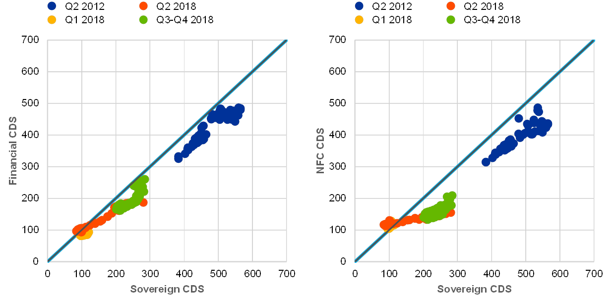 The impact of Brexit on euro area financial markets has remained limited. So far, aside from some bouts of volatility in the sterling exchange rate, growing uncertainties related to the Brexit process have not driven any significant repricing in financial markets. While an orderly withdrawal of the United Kingdom from the European Union poses a limited overall risk to the euro area’s financial stability, the uncertainty triggered by a cliff-edge Brexit could have the potential to pose a more significant downside risk to financial stability (see Box 6). In light of the risks, timely preparations on the part of banks and other financial institutions are needed for any possible outcome, including the possibility of a no-deal outcome.