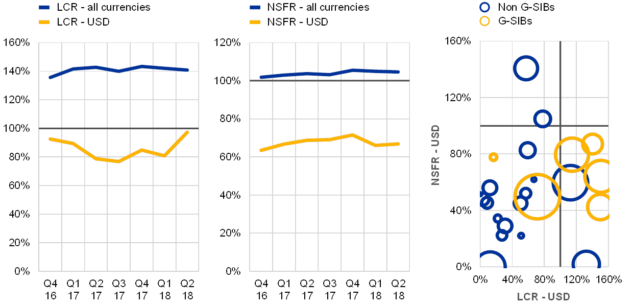 31. As euro area banks are currently reporting the NSFR ratios to the SSM for their total exposure only (i.e. across all currencies), the NSFR ratios for the significant currencies (such as the US dollar) are estimated based on the NSFR proxy tool developed by the EBA. The results derived from the NSFR proxy tool might differ from the actual NSFR values for US dollar exposures.