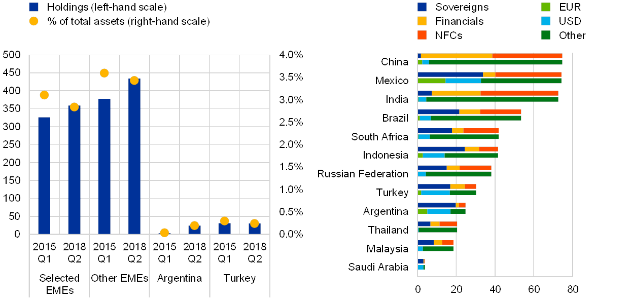 44. According to SHSS data, the aggregate euro area non-bank financial sector reduced its holdings of Italian government bonds by 5% (€36 billion) between March and June 2018.