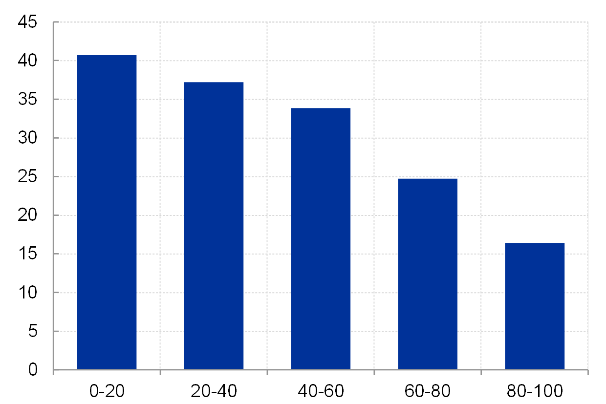 Note: The chart shows the distribution of the share of employees in lockdown sectors across quintiles of the income distribution in the euro area.